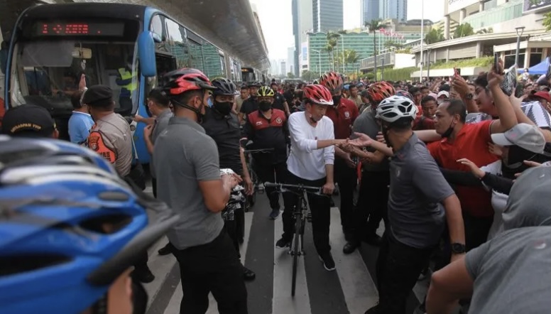 Based on information from the Press Bureau of the Presidential Secretariat, President Jokowi mingled with people who also exercise and enjoy CFD. Several times, the President was seen getting off his bicycle to greet and take selfies with the public.
