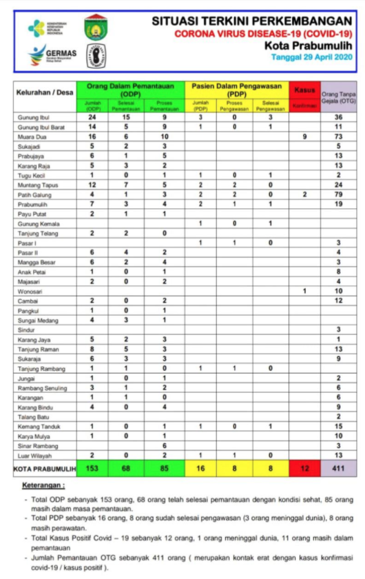 Meanwhile, Mayor of Prabumulih, Ridho Yahya, two days ago officially announced plans to propose a PSBB (Large-Scale Social Restriction) in the City of Prabumulih. The announcement was based on the increasing development of the Covid-19 case in Pineapple City. According to Ridho, the PSBB proposal to the Minister of Health, via the Governor of South Sumatra, was the result of a study from the team, which he had coordinated with the Regional Leaders Communication Forum (Forkompimda), Prabumulih City.