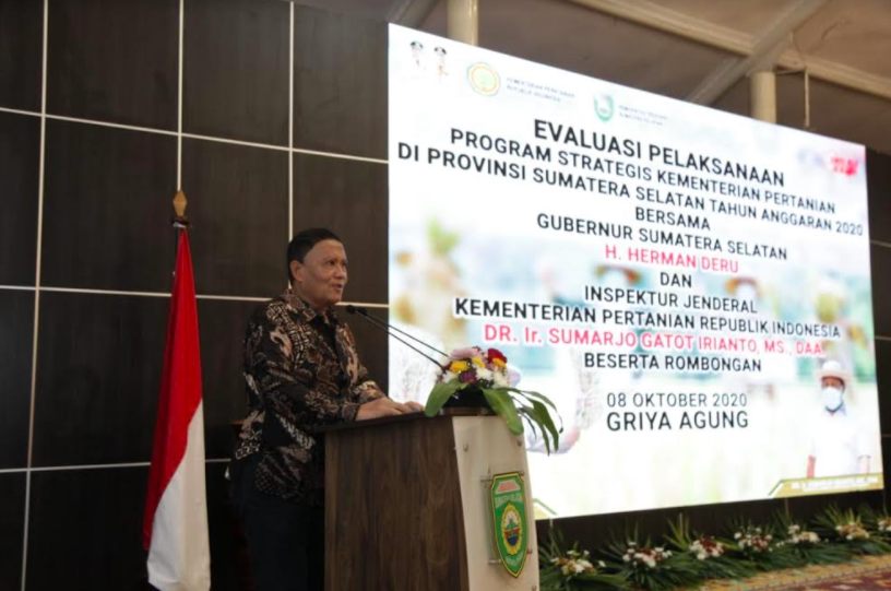 He said this at the Ministry of Agriculture (Kementan) Strategic Program Implementation Evaluation Meeting in South Sumatra Province for the 2020 Fiscal Year with the Inspector General of the Indonesian Ministry of Agriculture DR.Ir Sumarjo Gatot Irianto MS., DAA with the Governor of South Sumatra H. Herman Deru and his staff at Griya Agung, Thursday ( 08/10/20) night.