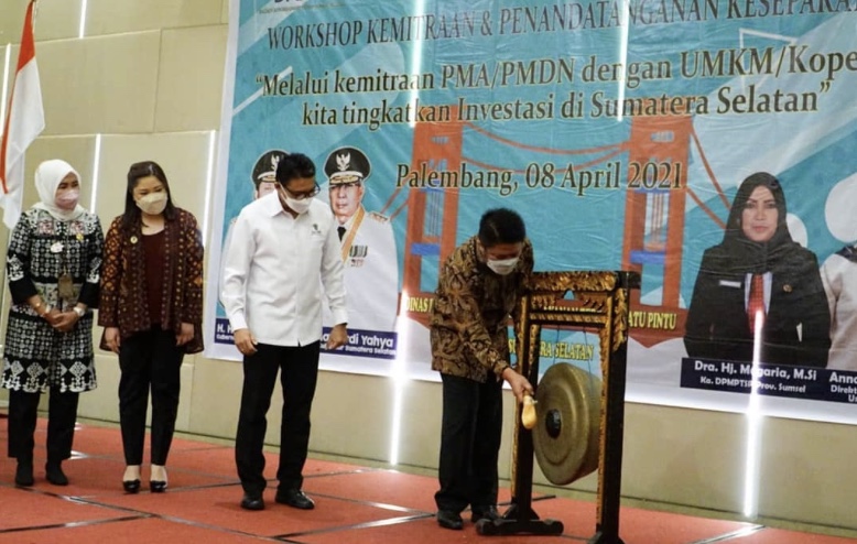 The Head of DPMPTSP South Sumatra Province said that this activity had the theme Through PMA / PMDN Partnerships with MSMEs, we would increase investment in South Sumatra.