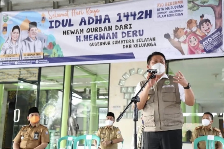 It is known, the handover of sacrificial cows by Governor Herman Deru started from the Al Amin Mosque in the Palembang apartment area. At that place, Herman Deru handed over the sacrificial cow on behalf of himself and his family.