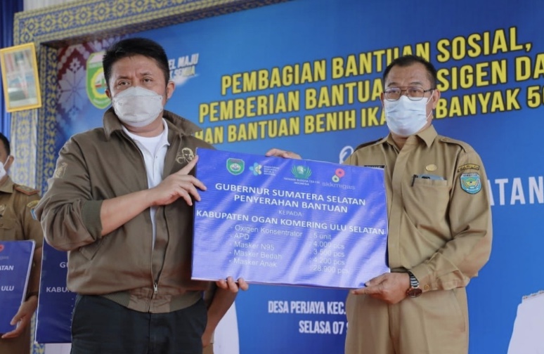 East OKU, The Indonesia Post – The Governor of South Sumatra H Herman Deru continues to pay attention to the people of South Sumatra during the COVID-19 pandemic. This time, Herman Deru handed over aid to people affected by Covid-19 as well as oxygen assistance.