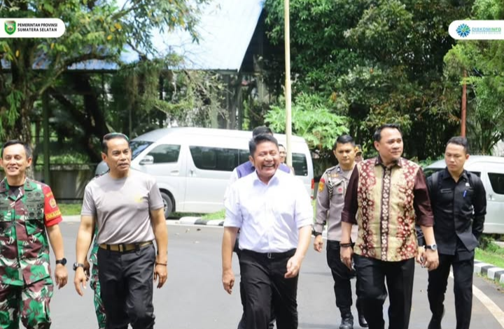 Palembang, The Indonesia Post — South Sumatra Governor H. Herman Deru, together with Pangdam II/Sriwijaya Maj. Gen. TNI Ujang Darwis, South Sumatra Police Chief Insp. Gen. Andi Rian R. Djajadi, and South Sumatra DPRD Chairman Andie Dinialdie, performed Friday Prayers in congregation at Griya Agung Mosque on Friday (August 1, 2025).