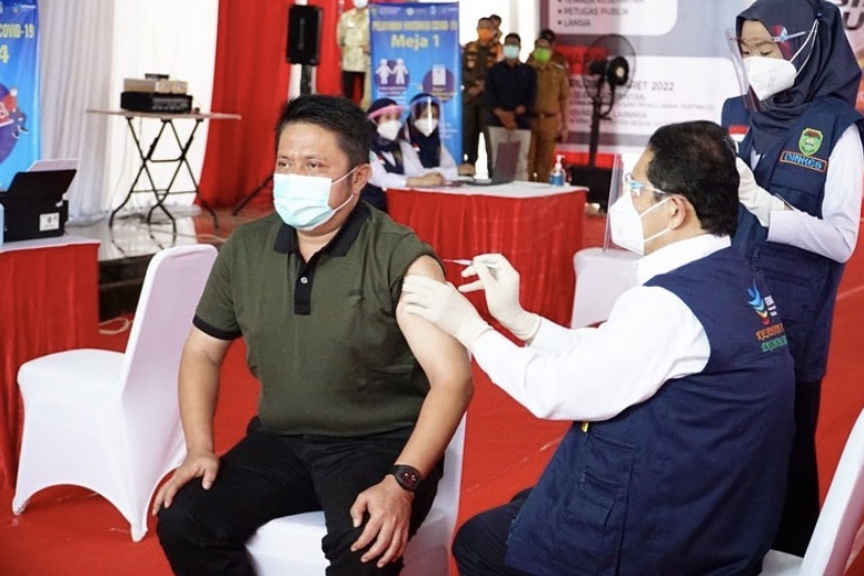 The Indonesia Post – Exactly 14 days after the first dose of Covid-19 Vaccination was given on January 14, 2021, today the second dose of Covid-19 vaccination was carried out for the Governor of South Sumatra H. Herman Deru.