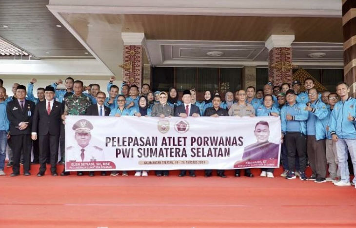 Palembang, The Indonesia Post – The Chairperson of the South Sumatra Provincial Legislative Council (DPRD), Mrs. Dr. Hj. R.A. Anita Noeringhati, SH., MH., together with the Acting Governor of South Sumatra (Sumsel) Elen Setiadi, S.H., M.S.E, released the South Sumatra contingent that will compete in the 14th National Journalist Sports Week (Porwanas) in 2024 in South Kalimantan (Kalsel). The release of the 72 South Sumatra contingents was held at Griya Agung Palembang, Sunday (18/8/2024).