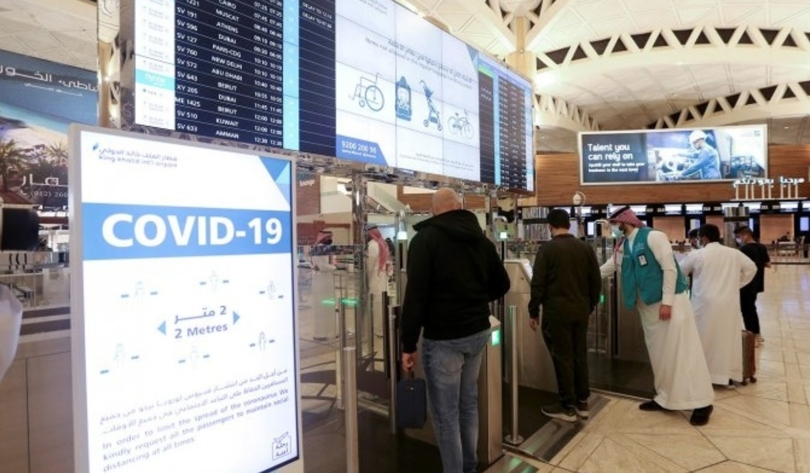 “It’s a great feeling, thank God, we are happy, especially after the difficult times we and the whole world are suffering,” said Bandar Al Nawash, a passenger who was in the departure lounge of King Khalid International Airport.